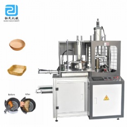 Parchment paper making machine, you can also call it AIR fyrer paper liner machine,this machine is an advanced machine designed for baking market. Parchment paper making machine runs a whole procedure of automatic separate certain amount paper, clip paper, feeding paper, heating, molding, discharging. Machine owns the function that when paper is almost used up, machine will alarm to remind. The machine owns excellent performance, low noise, high efficiency, durable and stable product quality. It can make different shape and size paper liners and cake trays by changing molds. Besides, we also have DS-JH manual model as choice some bigger size, shape and market demand.